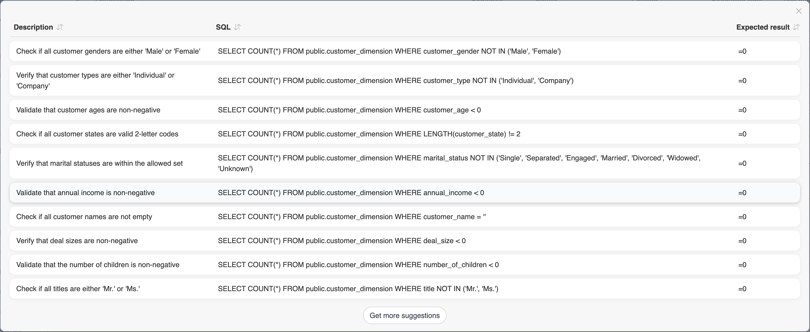 Actual result - Allows user to execute suggested SQL against database and also verify results