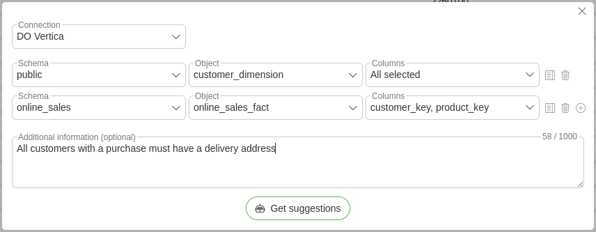 Additional information - User's free-form prompt to get a specific suggestion. Can be empty in which case the AI assistant will generate suggestions based on metadata only.