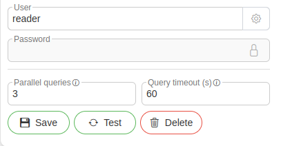The platform supports configuring additional database users to be used for querying results and seeing results of past executions. The use case for this is if you want to limit some users of the platform to not have access to data that is reachable with the master user configured for the connection.