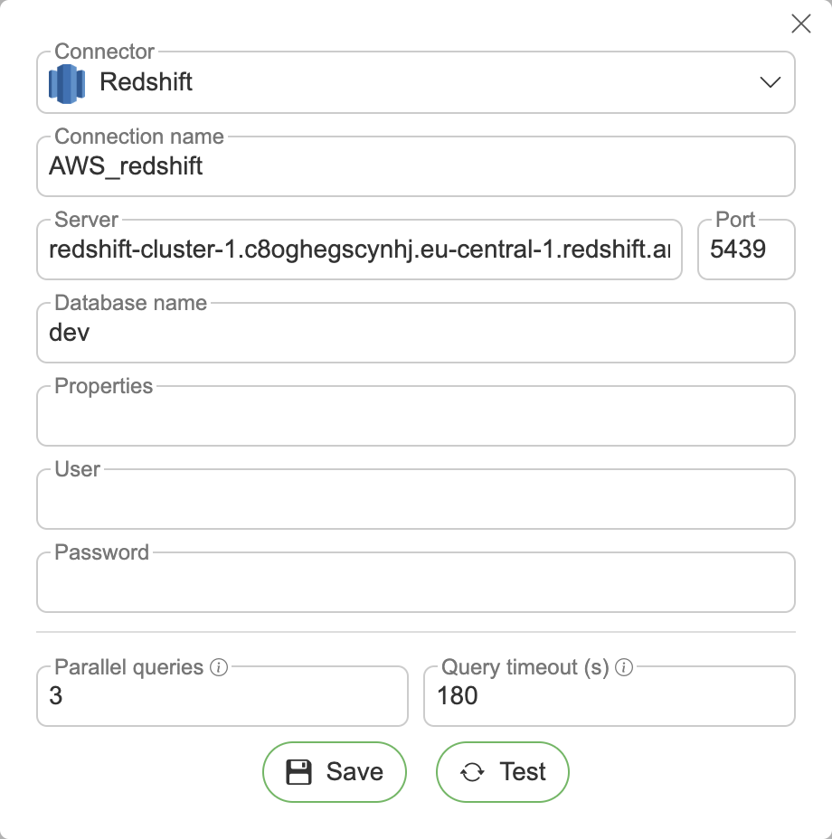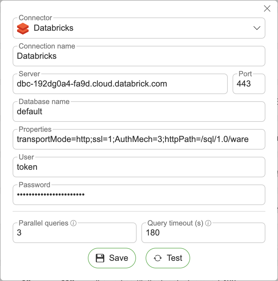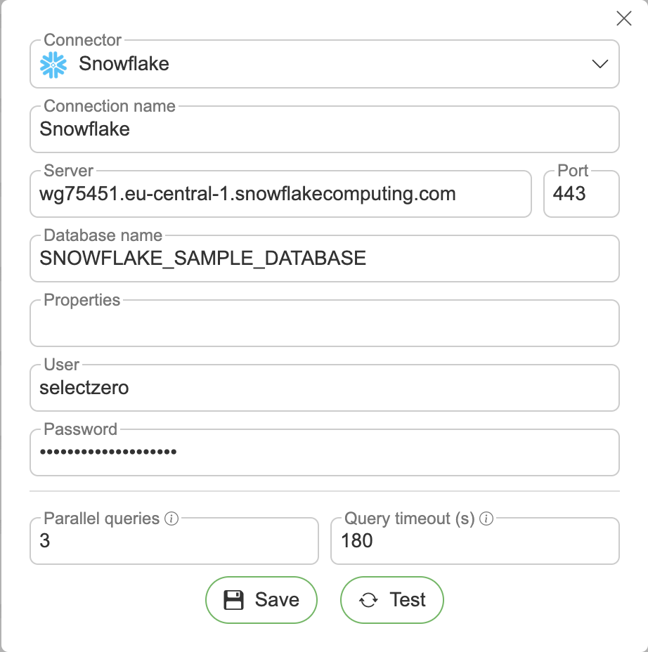 Query timeout (s) – maximum number of seconds the connection waits for a response from the database