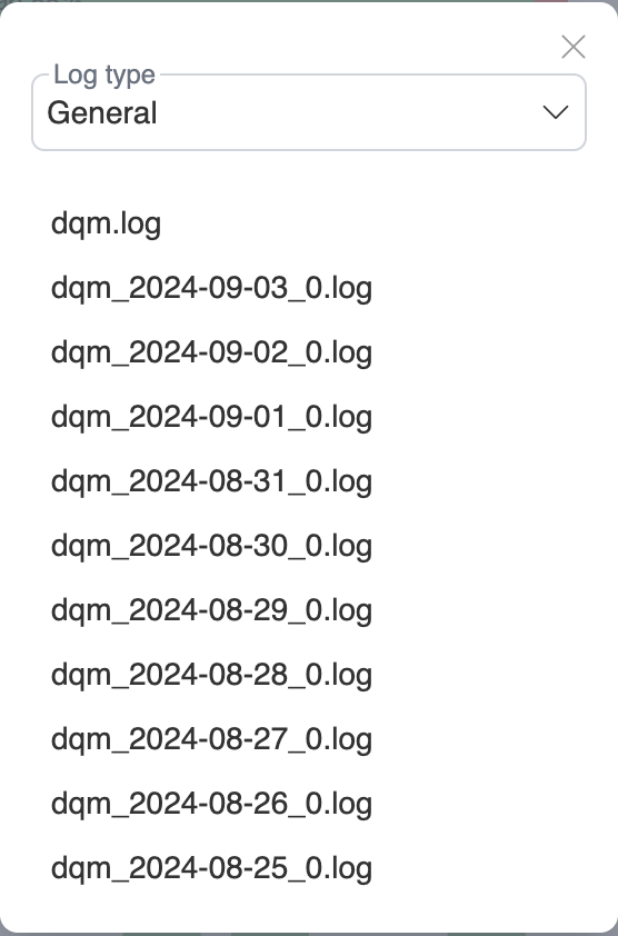 Clicking " Logs " button from sidebar will open logs modal. Logs give an overview of the application's user and system actions.