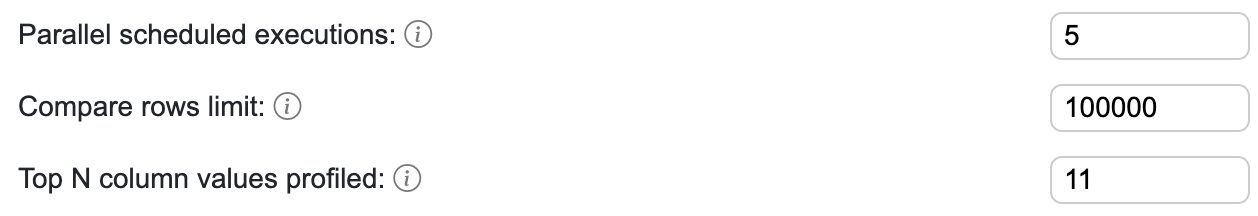 Compare rows limit – maximum amount of database rows to be queried in compare test cases. This limit can be set to manage memory performance