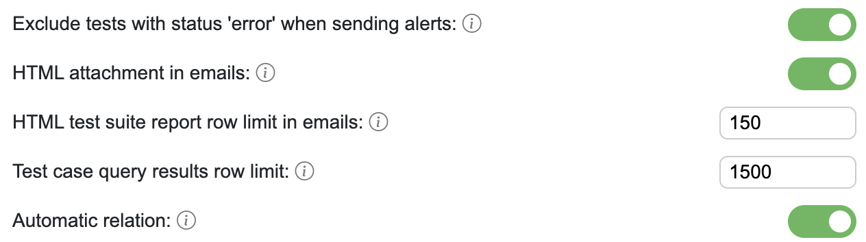 HTML test suite report row limit in email content – Maximum number of detailed test rows included in email content (recommended 100)