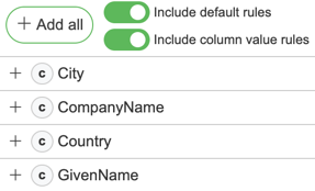 Profiling rules are used to profile data for columns. By default, a set of rules is available by the application, such as: