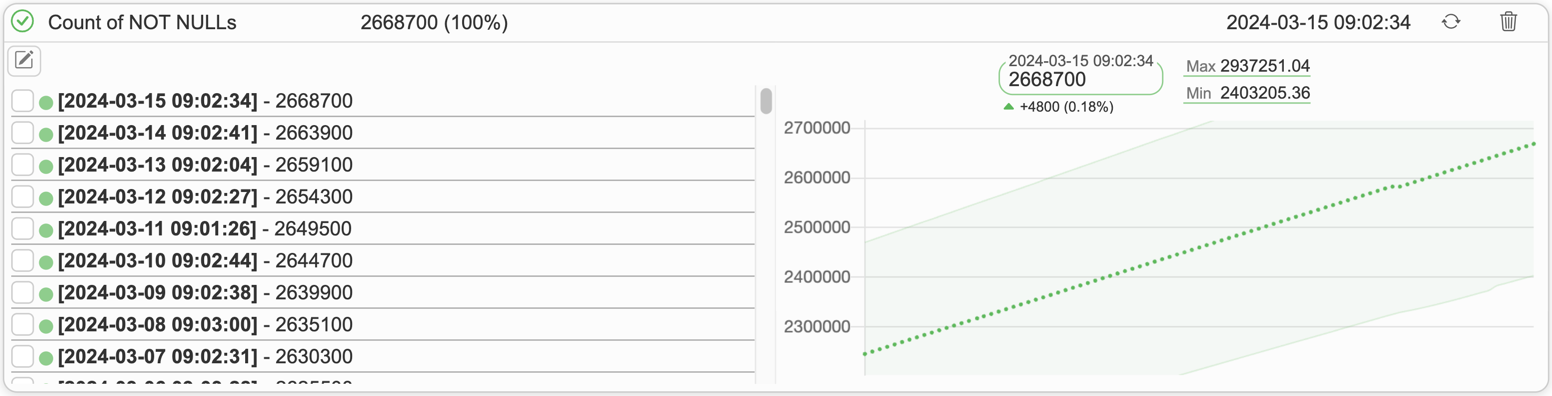 It is possible to analyze how values in column change over time. This allows the application to detect deviations/anomalies in date and alert users.