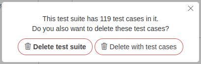 Delete with test cases – all tests that are in the test suite will also be deleted