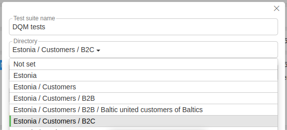 Each test suite can be assigned into a custom directory to create a directory-based structure for test suite management. Directories can be created by clicking on the plus sign on the sidebar after "Directories". To create or edit sub-directories, hover on a directory name and click the plus icon or pencil icon.